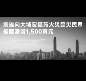 震雄向大埔宏福苑火灾受灾民众捐赠港币1,500万元